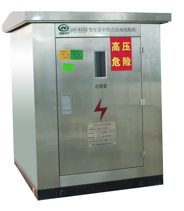 HT-B102-FZG或HT-B102-BZG系列中性點(diǎn)接地電阻柜,適用于6~35kV、50Hz中壓配電電網(wǎng)中,是用于連接變壓器或發(fā)電機(jī)與大地之間的一種限流保護(hù)電氣設(shè)備。當(dāng)配電網(wǎng)內(nèi)部出現(xiàn)故障時(二相短路、單相接地、單相斷路等),配電網(wǎng)中性點(diǎn)將產(chǎn)生偏移,此時中性點(diǎn)接地電阻將配電網(wǎng)中性點(diǎn)經(jīng)電阻強(qiáng)制接地并限制其故障電流,使繼電保護(hù)設(shè)備有足夠時間進(jìn)行檢測實(shí)現(xiàn)跳閘和備用切換,避免配電網(wǎng)和電氣設(shè)備遭到破壞。