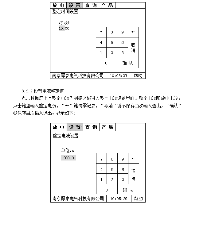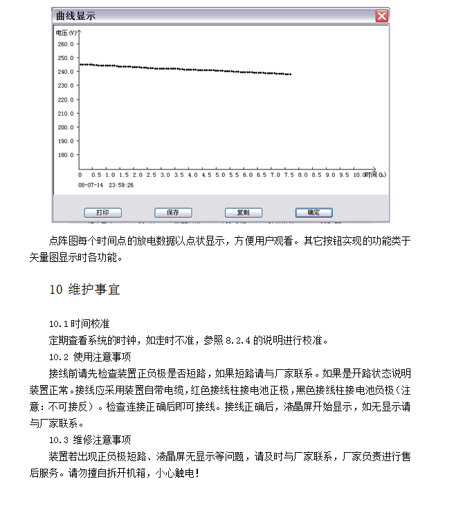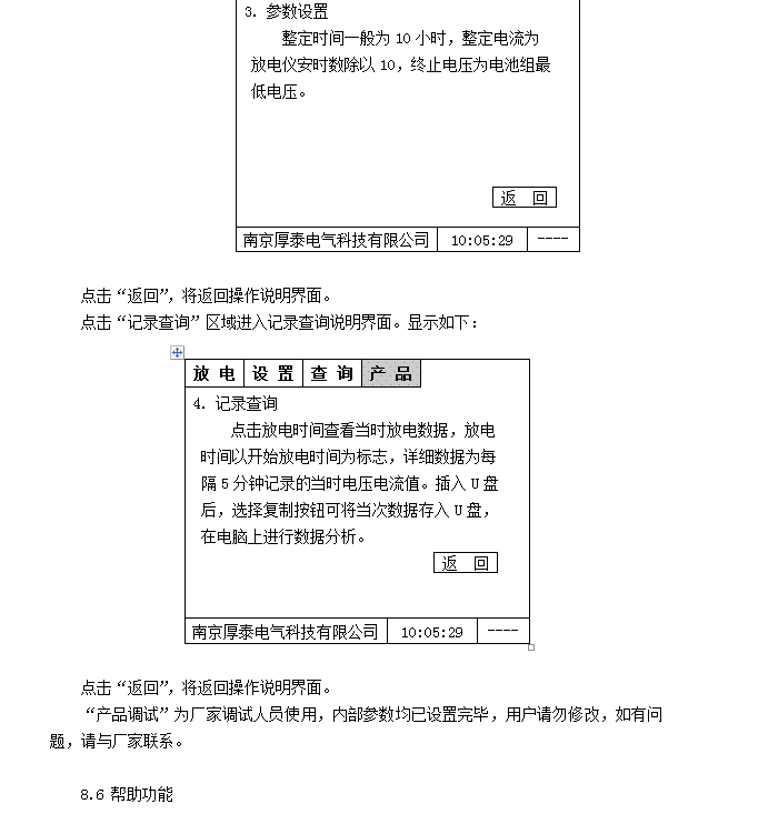 5.4 實(shí)時(shí)顯示放電電流、電池電壓、放電時(shí)間、釋放容量、實(shí)時(shí)時(shí)鐘、整定值信息。