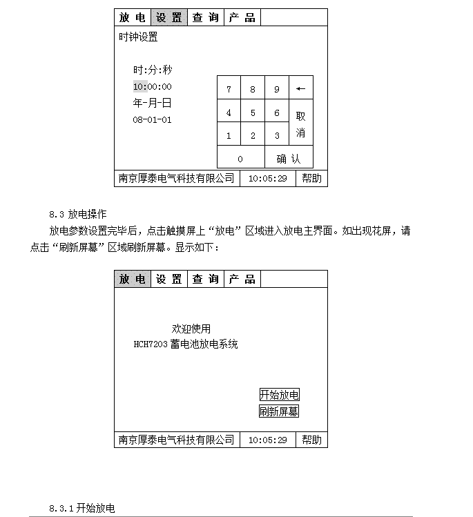 設(shè)置—設(shè)置放電參數(shù)及時(shí)鐘;